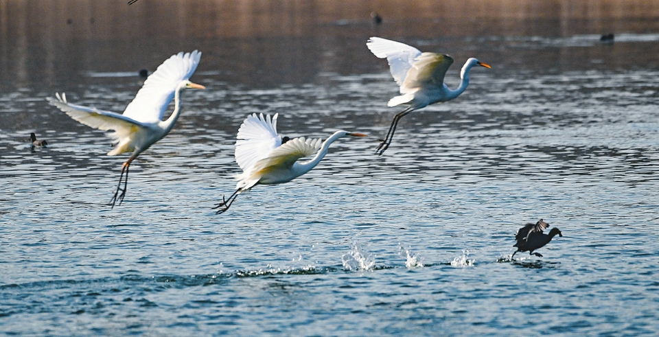 2月18日,正值雨水時(shí)節(jié),太原汾河濕地公園呈現(xiàn)出一派生機(jī)勃勃的景象。河水潺潺流淌,冰消雪融,白鷺、紅嘴鷗、白骨頂雞等野生鳥類在水面盡情嬉戲,奏響了春天的樂(lè)章。