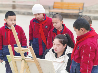高潮在為孩子們上美術(shù)課。