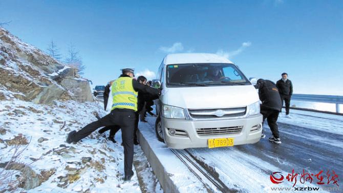 10月16日,五臺(tái)山景區(qū)境內(nèi)出現(xiàn)雨夾雪天氣,伴隨著氣溫下降,部分路段出現(xiàn)積雪。當(dāng)日7時(shí)許,五臺(tái)山公安分局接到游客報(bào)警稱(chēng),在景區(qū)北線鴻門(mén)巖路段,由于下雪后道路有大量積雪成冰,導(dǎo)致多輛大巴車(chē)和轎車(chē)受阻無(wú)法通行,請(qǐng)求援助。