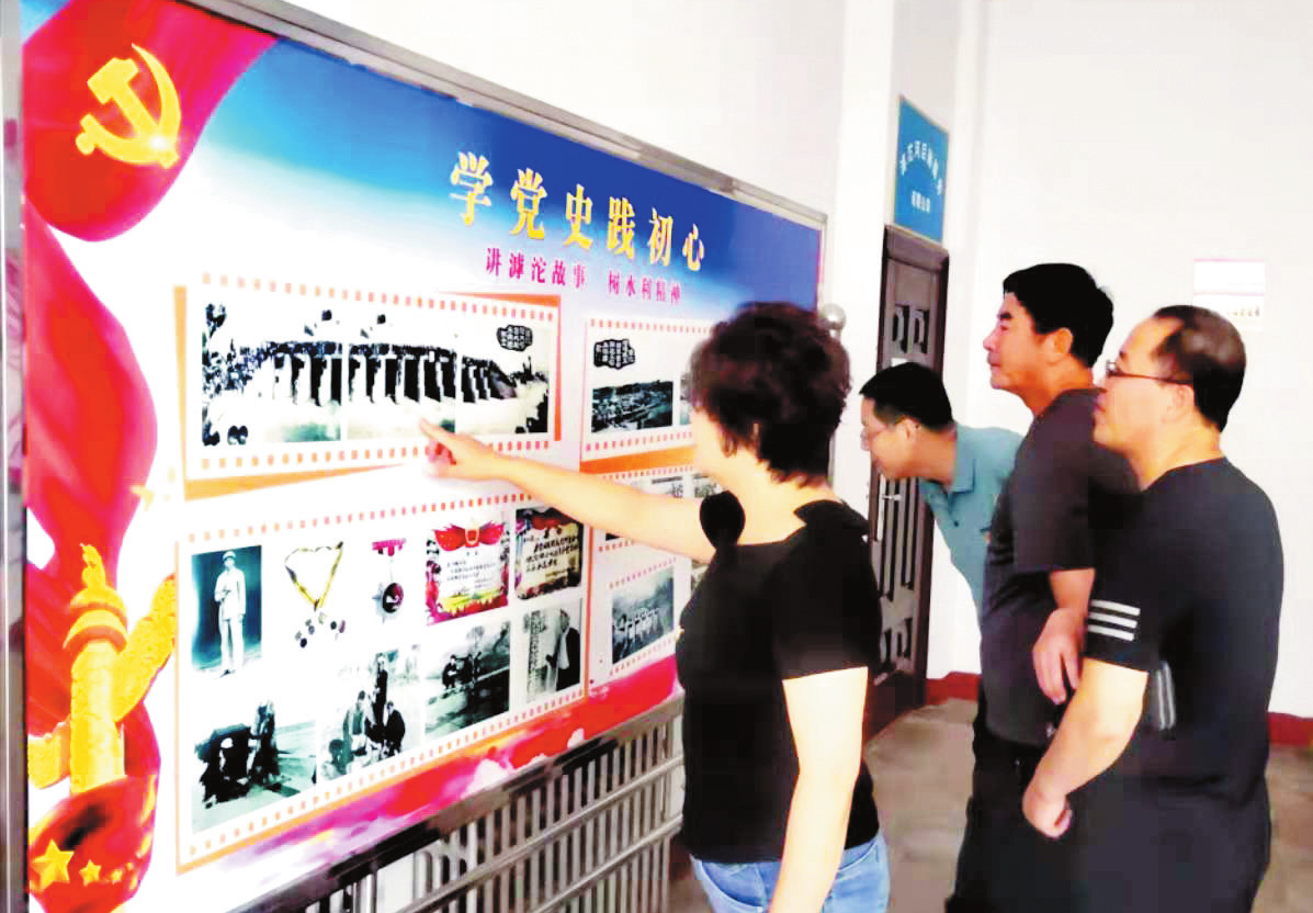 市滹沱河水利中心把黨史學(xué)習(xí)教育與“學(xué)黨史踐初心,講滹沱故事,樹水利精神”緊密結(jié)合,黨員們通過觀摩反映滹沱河水利人艱苦奮斗的展板,從中汲取不斷奮進(jìn)的力量。 (馮 偉 攝)