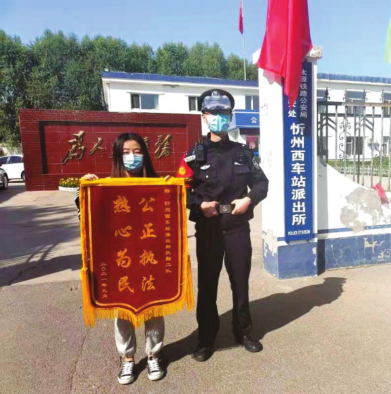 近日,大學(xué)生廖某乘坐出租車(chē)到忻州西站,下車(chē)時(shí)不慎將手機(jī)落在車(chē)上,因多次回?fù)軣o(wú)人接聽(tīng),廖某十分著急,連忙到忻州西站派出所客運(yùn)執(zhí)勤室向民警求助。值班民警根據(jù)廖某提供的車(chē)牌信息,查詢到該出租車(chē)司機(jī)的手機(jī)號(hào),最終將手機(jī)找到。手機(jī)失而復(fù)得,廖某臉上露出了感激的笑容,為表示感謝,幾天后她將一面“公正執(zhí)法 熱心為民”的錦旗送到忻州西站派出所。民警們熱心為民的暖心事跡也在周邊迅速傳開(kāi)。(實(shí)習(xí)生 許寧寧 攝影報(bào)道)