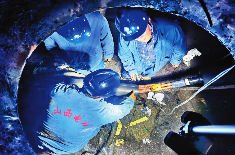 10月9日,持續(xù)強降雨天氣導致五臺山1號電纜井內積水嚴重,電纜受損,五臺供電公司及時搶修,保障正常供電。 (孫立新 攝)