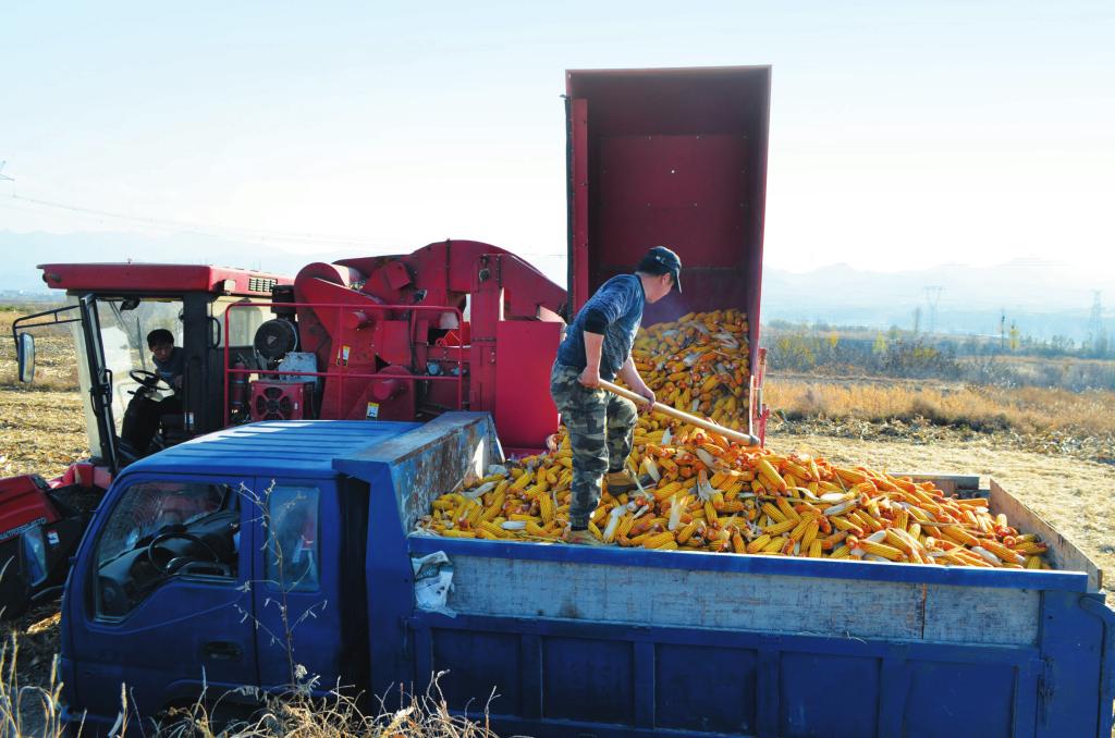 五臺縣東冶鎮(zhèn)北一村積極推進土地確權流轉,使外出村民棄耕和管理不善的土地向種田能手集中。村民王春明流轉土地800畝,并購置了大型農機具,進行科學種植,實現(xiàn)了增收致富。圖為王春明利用收割機搶收玉米,保證顆粒歸倉。 (王金龍 攝)