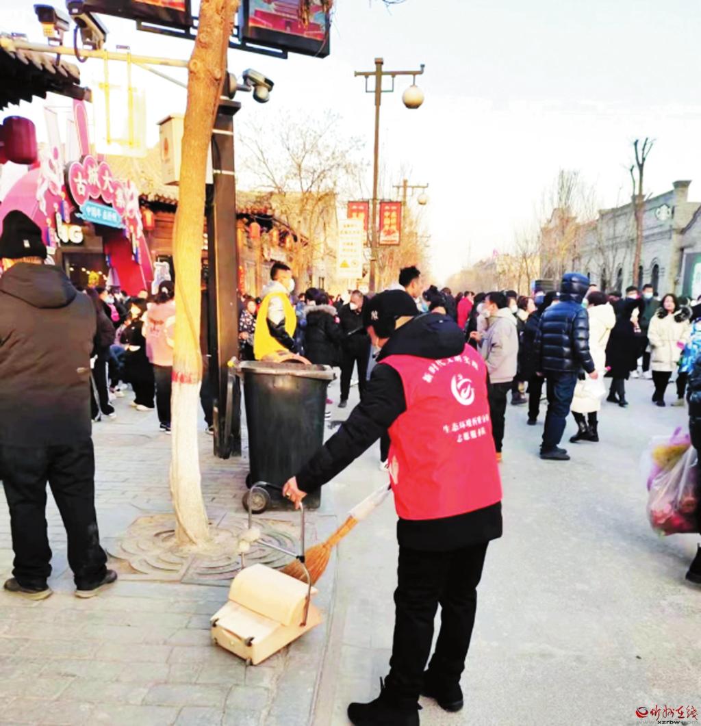 1月25日(農(nóng)歷正月初四),市生態(tài)環(huán)境局忻府分局組織的志愿服務(wù)者身穿紅馬甲,活躍在忻州古城明月樓兩側(cè)和打磨巷、周家巷等處。他們用實(shí)際行動(dòng)向游客傳播文明旅游理念,提供出行安全宣傳,細(xì)心地向游客介紹游覽路線、古城美食,并開展撿拾垃圾活動(dòng)。