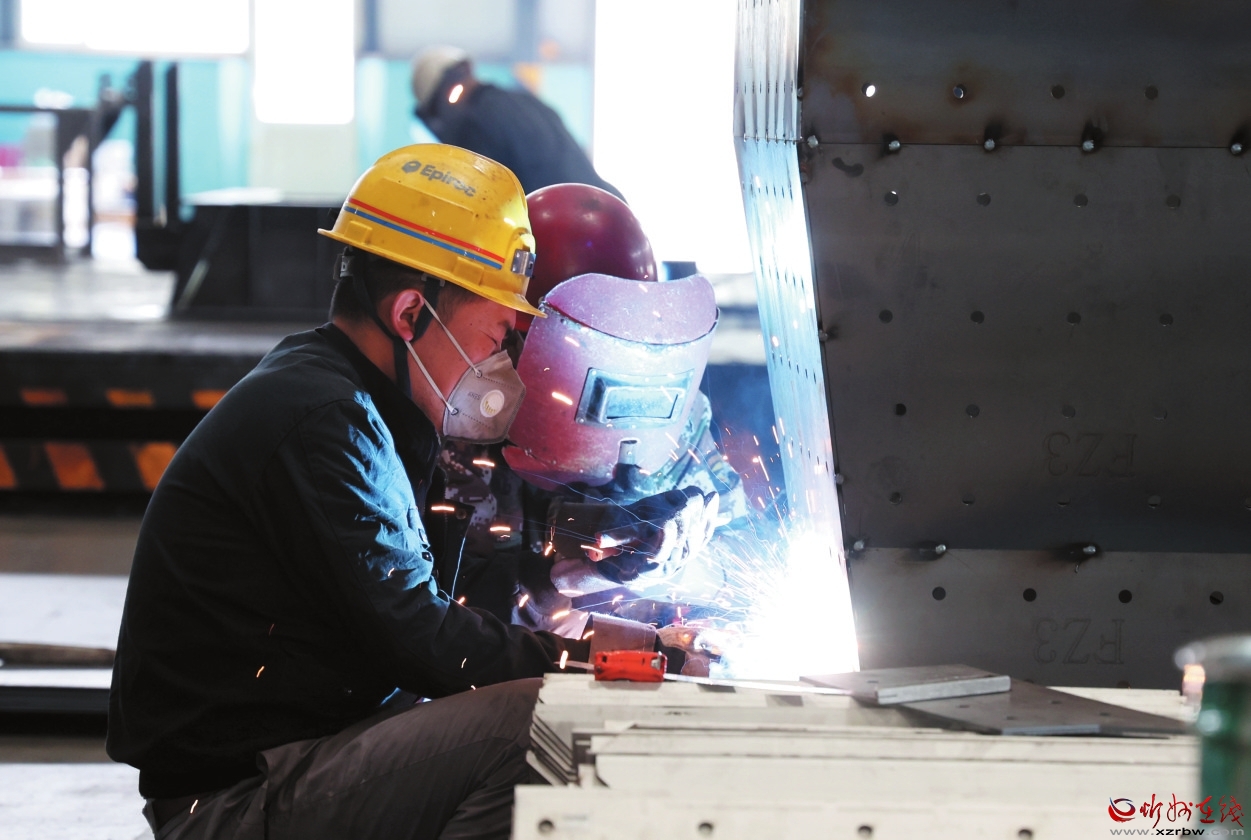 在久力科技的機(jī)械加工車間,工作人員正在對(duì)零部件進(jìn)行焊接作業(yè)。記者范琛攝