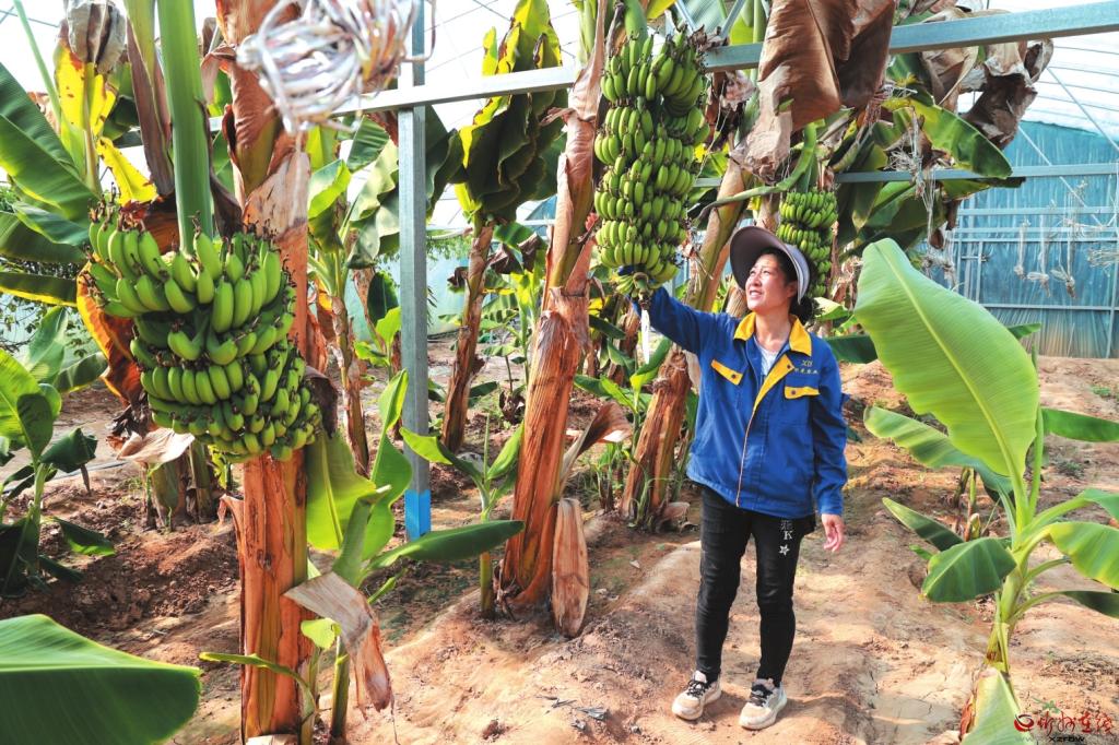 去年,侯學(xué)光在大棚開始試種“中蕉九號”?!靶酶畢^(qū)的水土環(huán)境竟與蕉苗生長條件高度契合,根系健壯少病害,首年就順利掛果。香蕉未熟時脆甜清香,成熟后軟糯可口,品質(zhì)不輸南方蕉?!彼d奮地向記者介紹說。通過邀請專家改良土壤、施用自產(chǎn)有機(jī)肥、科學(xué)規(guī)劃間距,曾經(jīng)的邊角地已變身茂密蕉林。