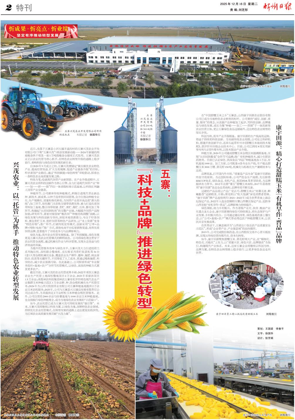 在“中國甜糯玉米之鄉(xiāng)”五寨縣,山西康宇田源農(nóng)業(yè)股份有限公司已成為當(dāng)?shù)靥厣r(nóng)業(yè)轉(zhuǎn)型的標(biāo)桿。公司秉持“誠信、創(chuàng)新、質(zhì)量、服務(wù)”的理念,從農(nóng)副產(chǎn)品種植加工起步,憑科技創(chuàng)新、品牌建設(shè)與綠色發(fā)展,成長為集“種植——加工——營銷”于一體的新型農(nóng)業(yè)經(jīng)營主體,更讓五寨綠色食品遠(yuǎn)銷海外,邁出特色農(nóng)業(yè)轉(zhuǎn)型的堅實(shí)步伐。