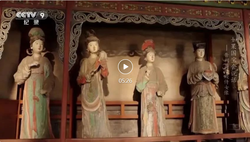 “一千年前,她搬進了一座大殿,進深六間,面闊七間,是她不曾想象的奢華,還有望到脖子酸的牌匾,懸甕山麓,晉水發(fā)源,是祭祀西周晉國第一任諸侯姬虞的祠堂——晉祠?!痹凇度绻麌鴮殨f話》第四季第13集中,全景呈現(xiàn)了晉祠圣母殿侍女像的文物故事。