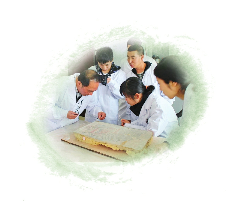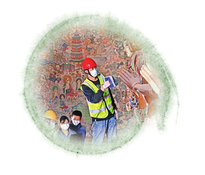 云岡石窟專業(yè)技術(shù)人員在開展教學(xué)實(shí)踐,帶領(lǐng)學(xué)生進(jìn)行壁畫保護(hù)修復(fù)實(shí)操。云岡石窟研究院提供