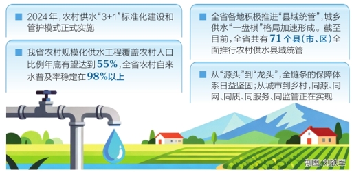 “‘3+1’模式就是以縣域為單元,優(yōu)先推進城鄉(xiāng)供水一體化、集中供水規(guī)?;ㄔO,因地制宜推進小型工程規(guī)范化,實現(xiàn)縣域?qū)I(yè)化管理全覆蓋。”省水利廳農(nóng)水處副處長王巧麗說。