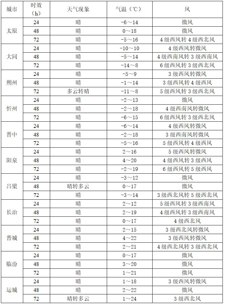 夜間氣溫偏低,北部及山區(qū)-9~-3℃,其他地區(qū)-3~4℃,早晚依舊寒冷