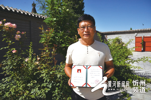 魏文福手捧省級谷子產業(yè)高級技能職業(yè)農民資格證