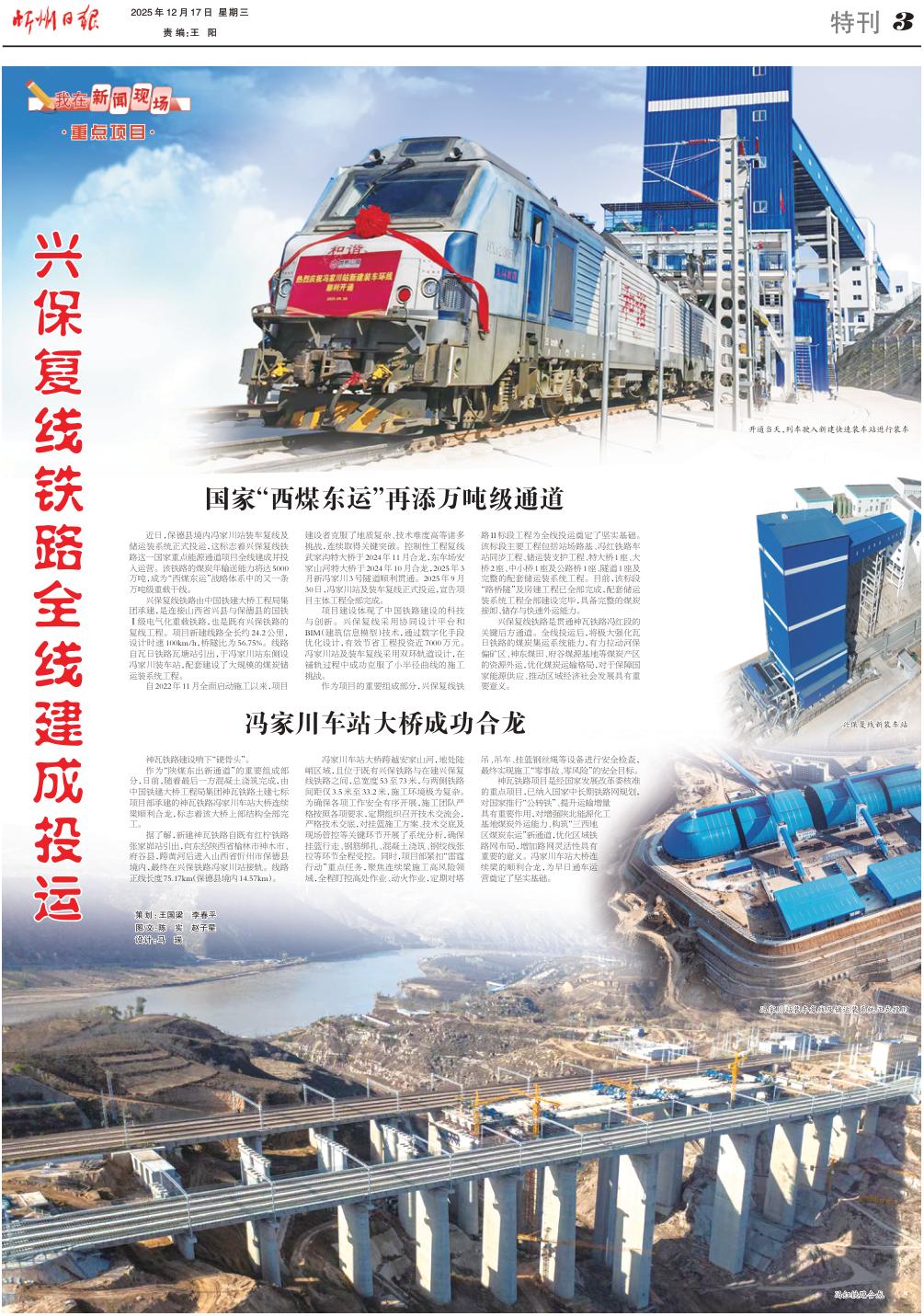 近日,保德縣境內(nèi)馮家川站裝車復(fù)線及儲(chǔ)運(yùn)裝系統(tǒng)正式投運(yùn),這標(biāo)志著興保復(fù)線鐵路這一國(guó)家重點(diǎn)能源通道項(xiàng)目全線建成并投入運(yùn)營(yíng)。該鐵路的煤炭年輸送能力將達(dá)5000萬(wàn)噸,成為“西煤東運(yùn)”戰(zhàn)略體系中的又一條萬(wàn)噸級(jí)重載干線。