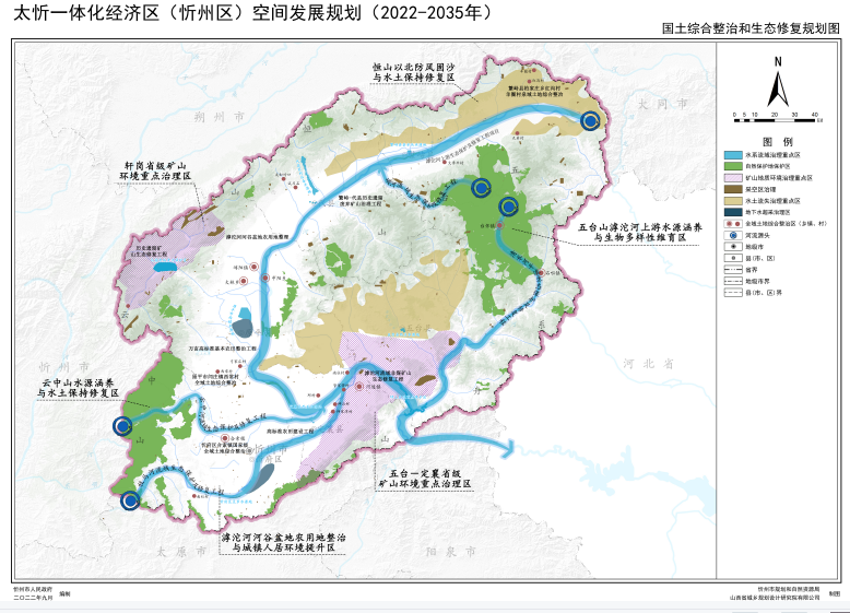 堅(jiān)持把全方位推動(dòng)高質(zhì)量發(fā)展作為總體目標(biāo),把一體化發(fā)展作為根本遵循,以基礎(chǔ)設(shè)施建設(shè)為先導(dǎo),以產(chǎn)業(yè)園區(qū)為載體,以區(qū)域文化為紐帶,將忻州區(qū)打造為“融入京津冀和服務(wù)大循環(huán)的門(mén)戶(hù)樞紐、山西中部城市群先進(jìn)制造高地、世界級(jí)文化休閑康養(yǎng)目的地、有機(jī)旱作農(nóng)業(yè)優(yōu)勢(shì)特色產(chǎn)業(yè)標(biāo)桿地、生態(tài)秀美的高品質(zhì)宜居地”。到2025年,國(guó)土空間開(kāi)發(fā)與保護(hù)的協(xié)調(diào)性大幅提升,山西中部城市群“北引擎”打造初見(jiàn)成效;到2035年,人與自然和諧共生的國(guó)土空間格局基本形成。