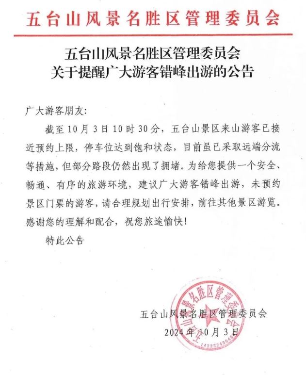 五臺(tái)山最新公告!