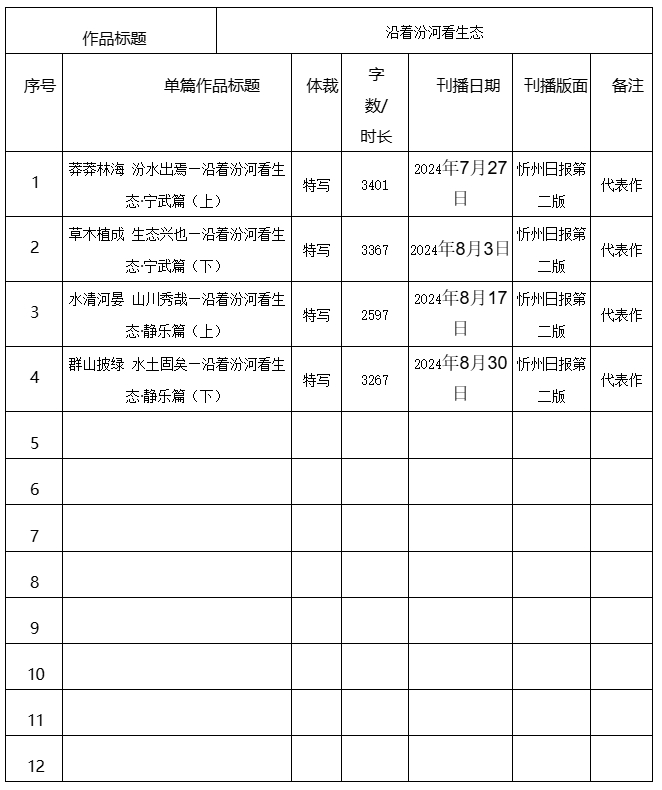 經(jīng)忻州日報社編委會研究決定,以下作品擬推薦申評第34屆山西新聞獎,現(xiàn)予以公示。有反對意見者,請將反對意見書面報至統(tǒng)計考核部。