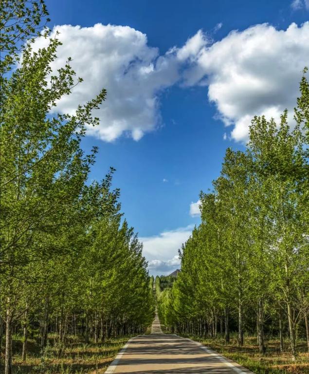 “夏天的綠翡翠,冬天的白玉石”。驅(qū)車駛?cè)胗矣瘢紫扔橙胙酆煹木褪沁@兩句旅游口號。當(dāng)日是“走向我們的小康生活”采訪團(tuán)初到右玉,看到湛藍(lán)的天、潔白的云、起伏綿延的林海,有外地來的年輕記者感嘆道:“這不是網(wǎng)上說的‘天空之鏡’么!”