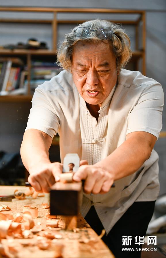 8月25日,在天津職業(yè)大學(xué)辛全生大師木藝工作室,辛全生在用刨刀刮料。今年62歲的辛全生是天津市南開(kāi)區(qū)傳統(tǒng)木工榫卯技藝的非遺代表性項(xiàng)目傳承人。2019年9月,天津職業(yè)大學(xué)為發(fā)展并傳承木工技藝,邀請(qǐng)辛全生作為老師給學(xué)生們授課,負(fù)責(zé)教授學(xué)生們榫卯結(jié)構(gòu)知識(shí)和木藝家具制作等實(shí)用技巧,并于2019年底在校內(nèi)建立辛全生大師木藝工作室。 辛全生出生于匠人家庭,他聽(tīng)從父親的建議從16歲開(kāi)始學(xué)習(xí)木工。40余年的木工生涯,辛全生經(jīng)歷過(guò)木工行業(yè)曾經(jīng)的紅火和后來(lái)的逐漸衰落,也曾在最艱難的時(shí)候做過(guò)別的營(yíng)生。但無(wú)論如何,辛全生始終忘不了自己的木工身份。“老祖宗留下來(lái)的東西不能丟了,要傳承下去,否則將來(lái)的后代誰(shuí)都不知道木工榫卯技術(shù)的存在了?!毙寥f(shuō)。 近年來(lái),有近百名不同職業(yè)、不同年齡的人慕名前來(lái)拜辛全生為師,學(xué)習(xí)傳統(tǒng)木工榫卯技藝。辛全生說(shuō),我會(huì)讓徒弟們學(xué)好木工榫卯技藝,讓中國(guó)的傳統(tǒng)手藝發(fā)揚(yáng)光大。新華社發(fā)(孫凡越 攝)