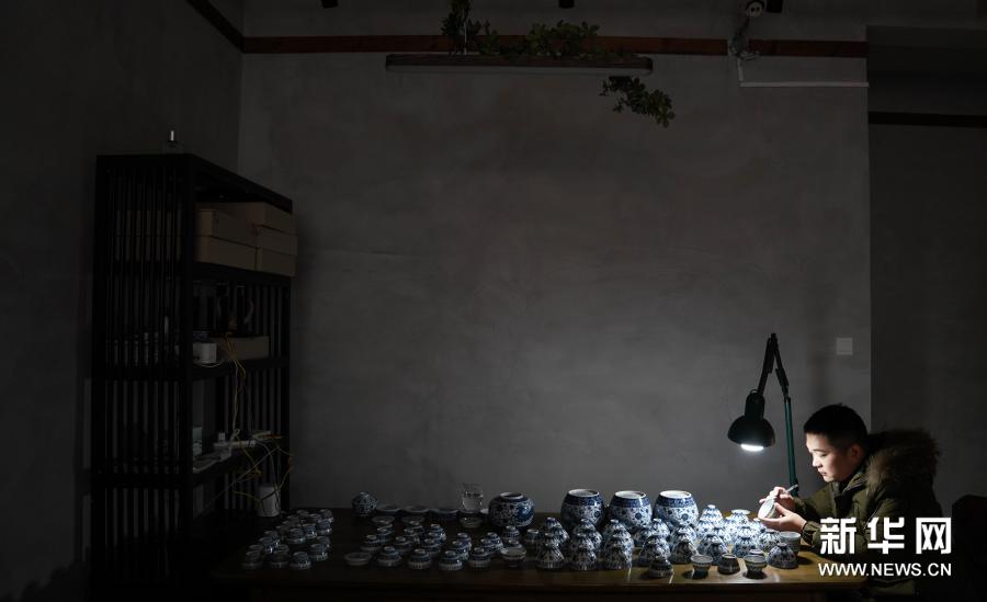 團(tuán)隊(duì)負(fù)責(zé)人汪敏輝介紹,一只普通的青花茶杯,從成型到燒制成功,至少需經(jīng)10多名工匠之手,不容任何一個(gè)環(huán)節(jié)出錯(cuò),團(tuán)隊(duì)成員總是努力把手藝做到極致。新華社記者 胡晨歡 攝
