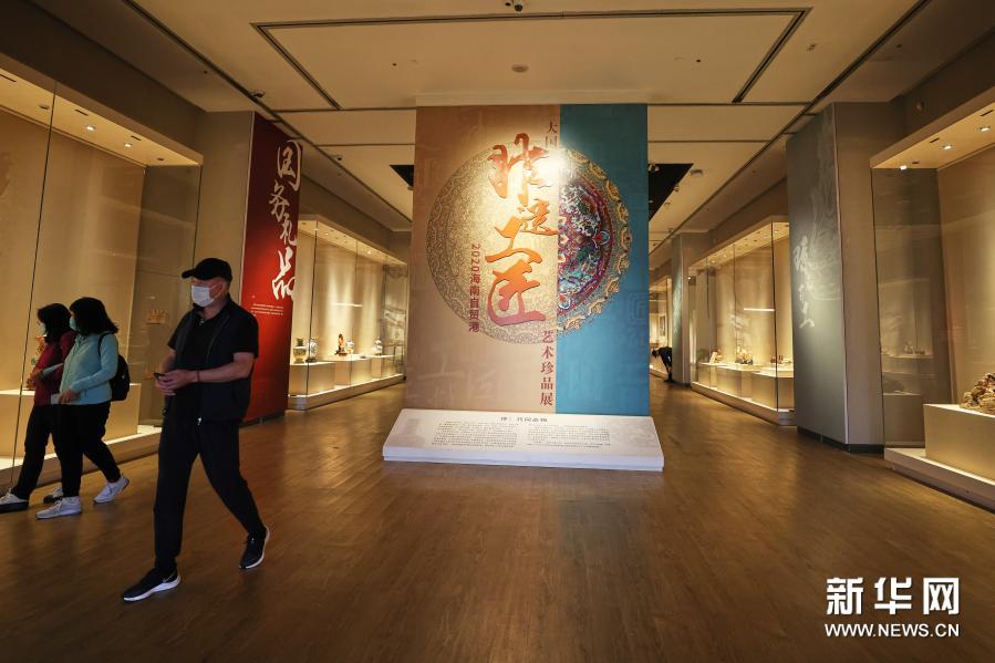 12月30日,人們?cè)诤D鲜〔┪镳^參觀2020海南自貿(mào)港大國(guó)非遺工匠藝術(shù)珍品展。近日,2020海南自貿(mào)港大國(guó)非遺工匠藝術(shù)珍品展在海南省博物館開展,展覽分為大國(guó)非遺工匠藝術(shù)珍品展和技藝傳承展兩大展區(qū)。珍品展展出北京景泰藍(lán)、雕漆、景德鎮(zhèn)陶瓷、海南工藝美術(shù)代表作品等具有代表性的非物質(zhì)文化遺產(chǎn)作品,在技藝傳承展區(qū),非遺手工藝人現(xiàn)場(chǎng)展演展示黎錦、苗繡、雙面繡、木雕等技法。(新華社記者 張麗蕓 攝)
