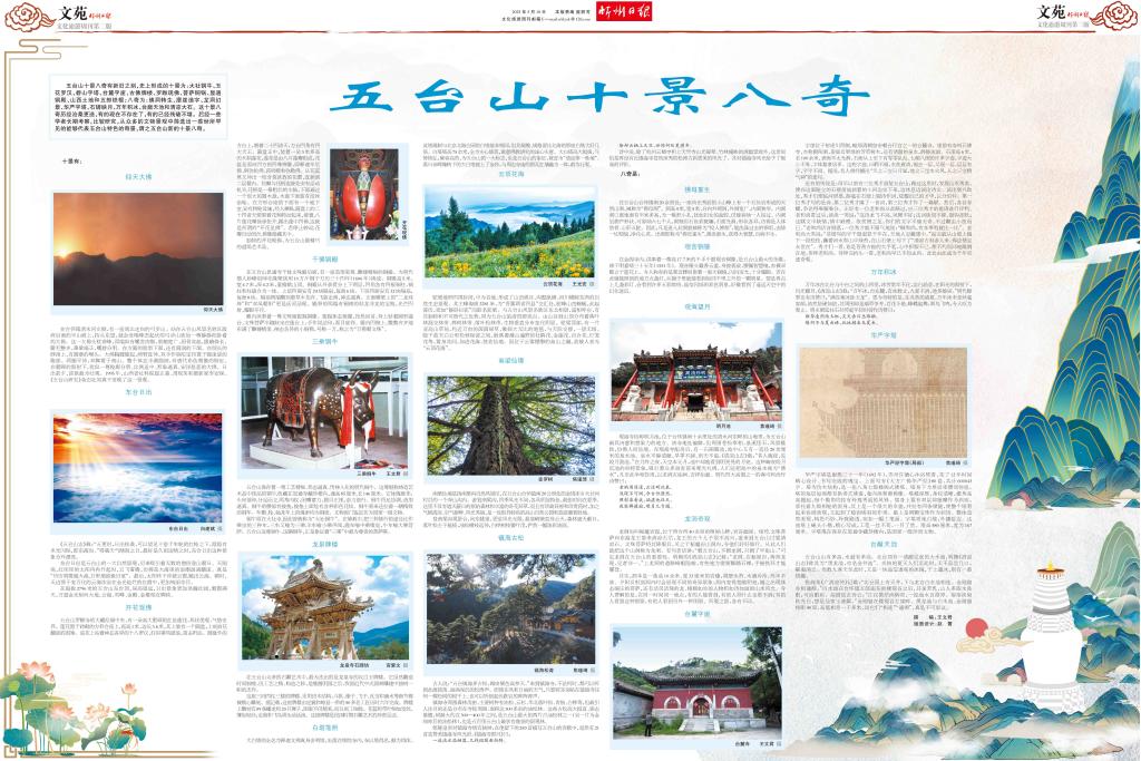 五臺山十景八奇有新舊之別,史上形成的十景為:大社銅牛、玉花羅漢、碧山字塔、臺麓字崖、古佛牌樓、羅睺現(xiàn)佛、菩薩銅鍋、顯通銅殿、山西土地和五郎鐵棍;八奇為:佛洞轉(zhuǎn)生、摩崖造字、龍洞幻景、華嚴字塔、石罅映月、萬年積冰、臺巔天池和清涼大石。這十景八奇歷經(jīng)滄桑更迭,有的現(xiàn)在不存在了,有的已經(jīng)殘破不堪。后經(jīng)一些學者長期考察,比較研究,從眾多的文物景觀中篩選出一些世所罕見的能夠代表五臺山特色的奇景,謂之五臺山新的十景八奇。