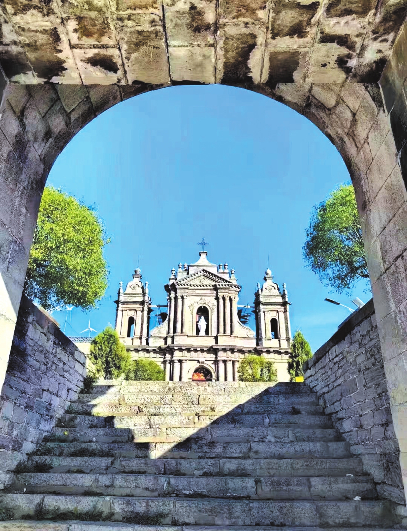 這座教堂始建于18世紀(jì)70年代,占地達(dá)三萬平方米。1897年—1898年間,意大利籍主教艾士杰與建筑師李有剛運(yùn)用當(dāng)?shù)仄胀ùu石,奇跡般建造出一座異國風(fēng)情的高山城堡。教堂主體建筑簡練垂直,頂部裝飾方圓相間,數(shù)不清的十字架直指云天。內(nèi)部則完全是西式的雕像、壁畫和教務(wù)活動,讓人恍如置身歐洲。