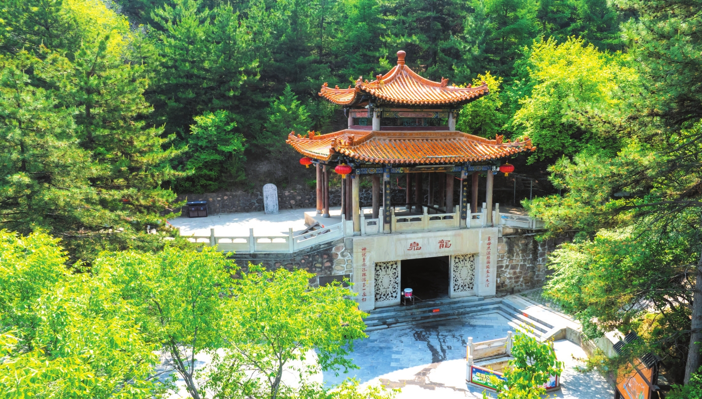 山有水而媚,土得水而沃。從大雄寶殿出來,沿著西門旁一條小道不遠(yuǎn)處,就是那片號稱“天柱松濤”的松林了。只見樹干筆直,枝條蒼勁,直指云霄,林間松脂飄香,氣息悠然。人還在松林中流連尋芳,遠(yuǎn)遠(yuǎn)就能聽到聞名已久的“天柱龍泉”在流淌。龍泉位于景區(qū)廟群西南的龍泉閣,作為“靜樂舊八景”之首的“天柱龍泉”,又名“犬舐泉”,《魏書》載:“爾朱榮高祖羽健居北秀容川。會有狗舐地,因而穿之,得甘泉,故名?!毕鄠魅谐錾颀垼拭埲?。高山出泉是為奇觀,泉水清澈見底,旱不涸、澇不盈,夏飲清神,冬飲沁心。有“天柱圣境啟心智,龍泉奇觀令神怡”之頌。此泉水富含多種礦物質(zhì)和微量元素,是地地道道的“天然級礦泉水”。近幾年上山鍛煉的居民很多,人們上山時自帶裝水工具,攜泉水以做飯和飲用,期盼著龍泉水能給人帶來健康和好運(yùn)。站在龍泉邊,總能感受到一陣陣濕潤的水氣撲面而來,甚至像風(fēng)一樣輕繞著周身,使人置身于自然美景中不愿離開,連呼吸也變得無比暢快起來。