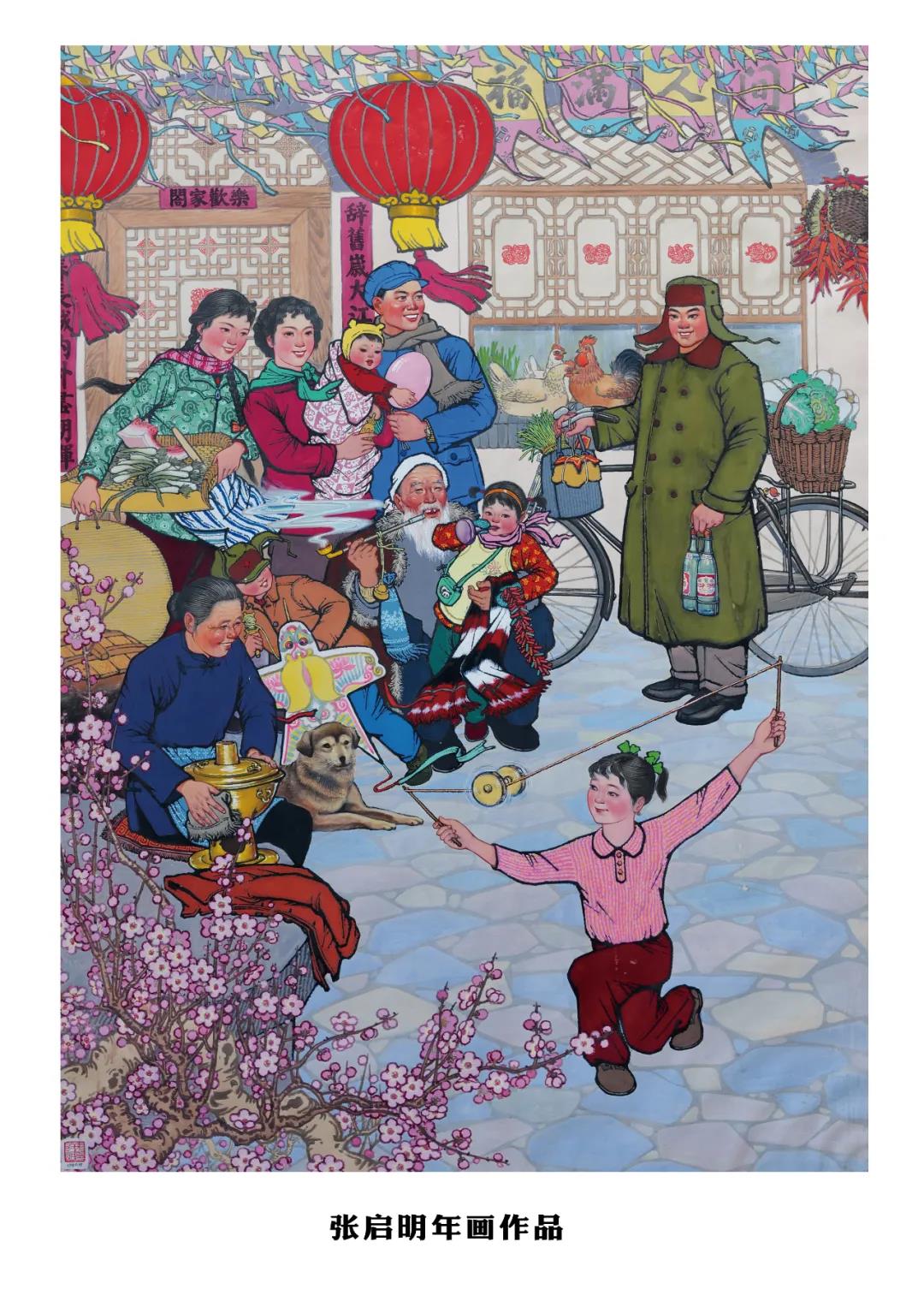 張啟明書法早年臨習顏真卿及華世奎帖,雄勁渾厚,樸茂端莊;又學漢隸,方健峻峭,追求金石風骨。繪畫以油畫、年畫為主,又攻國畫花鳥寫意,曾受教于孫其峰、張其翼、肖朗、王頌余諸師。