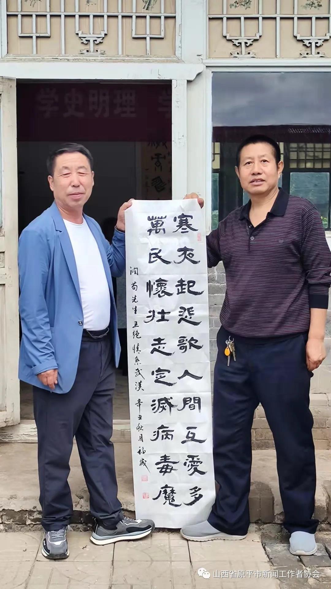 近日,原平市老年新聞文化學(xué)會組織開展了一次以學(xué)黨史悟思想為主旨的專題筆會活動。學(xué)會會長楊愛英、學(xué)會黨支部書記劉興良跟學(xué)會書畫藝術(shù)組成員一起,在這秋高氣爽、陽光燦爛的日子里,以滿腔熱情來到學(xué)會辦公中心柳巷牡丹園,參加了這一集研討和書法于一體的別開生面的活動。學(xué)會文化合作單位增壽口腔、金色童年、萬源石雕與奶爸奶媽等單位人員,以及部分書畫愛好者共近50人,共同分享了書藝交流的喜悅。