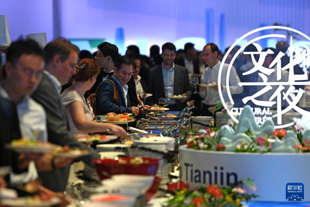 當(dāng)晚,第十四屆夏季達(dá)沃斯論壇文化之夜在天津梅江會展中心舉行。與會嘉賓伴隨著文藝演出,品嘗天津特色美食,體驗(yàn)中國傳統(tǒng)文化。新華社記者 趙子碩 攝