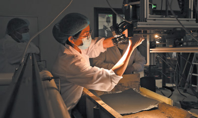 考古人員在實驗室,對三星堆出土文物進(jìn)行高光譜掃描。廣漢市委宣傳部供圖