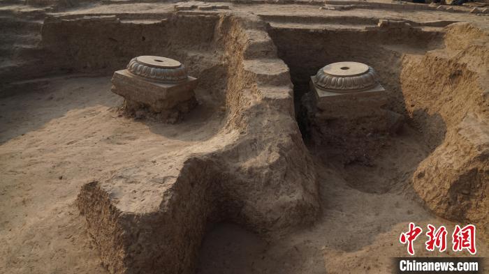 2018年11月25日,鄴南城宮城區(qū)206號大殿出土蓮花覆盆檐礎(chǔ)。(鄴城考古隊供圖)