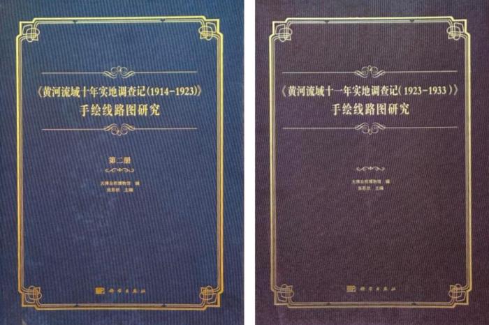 《〈黃河流域十年實地調(diào)查記(1914—1923)〉手繪線路圖研究》(第二冊)和《〈黃河流域十一年實地調(diào)查記(1923—1933)〉手繪線路圖研究》封面。 天津自然博物館供圖