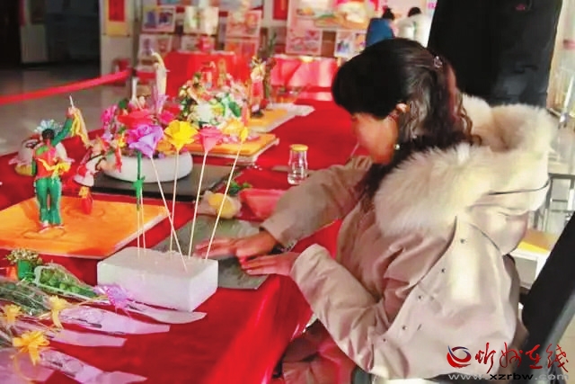 原平市北方現(xiàn)代雙語學(xué)校的老師展示面塑技藝