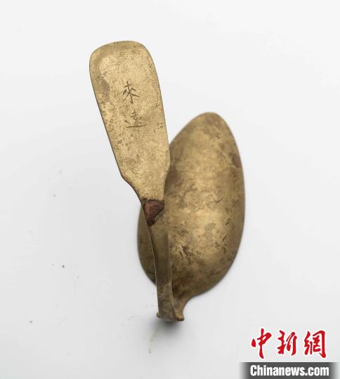 刻有“來遠”字樣的鍍銀湯勺。山東省水下考古研究中心供圖