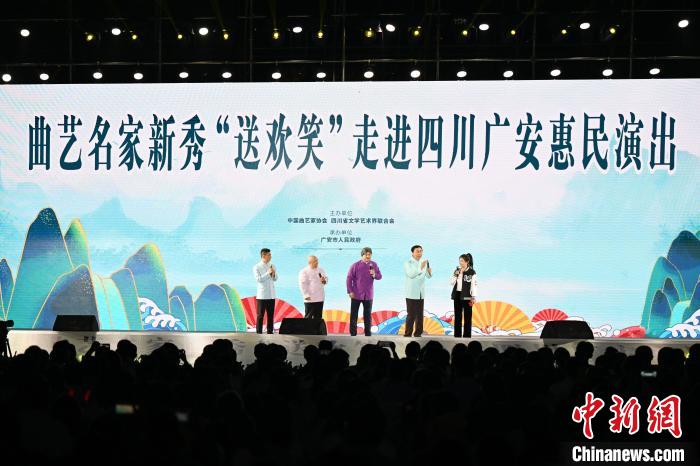 中新網(wǎng)成都5月10日電(王爵 王林)“我想死你們啦!”9日晚,由中國(guó)曲協(xié)、四川省文聯(lián)、廣安市人民政府聯(lián)合舉辦的中國(guó)曲協(xié)曲藝名家新秀“送歡笑”惠民演出活動(dòng)在四川省廣安市舉行,馮鞏、苗阜、李偉建、邵峰、趙海燕等曲藝大咖同臺(tái)演出,為廣安市民奉獻(xiàn)了一場(chǎng)精彩紛呈的曲藝盛宴,笑料十足、“笑果”滿滿。