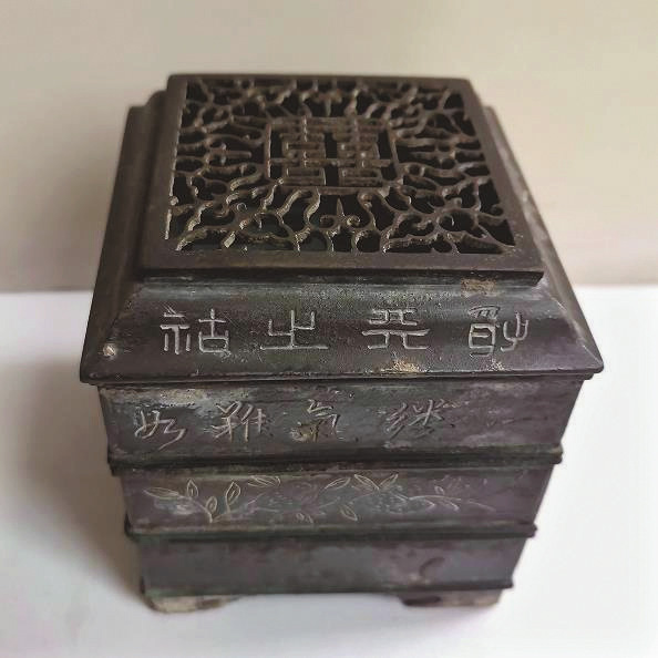 約二十年前,筆者在文物商店見到一只篆香方爐,形制規(guī)整小巧,鑄造典雅大氣,寓意吉祥,且價格不貴,便將其收入囊中。