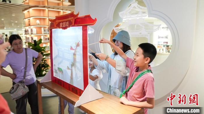 這個暑假,藏在書山之中的“館中館”融各種新潮體驗,為讀者送去絲絲清涼。少年兒童館里,戴著魔法手環(huán)的小讀者體驗著智慧展陳,4D影院的原創(chuàng)山海經(jīng)大片場場爆滿,“故事熊”旁坐滿了大小讀者。