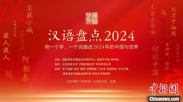 由國家語言資源監(jiān)測與研究中心、商務(wù)印書館等聯(lián)合主辦的“漢語盤點2024”20日在京啟動,“用一個字、一個詞描述當(dāng)年的中國與世界”,鼓勵全民用語言記錄生活,描述中國視野下的社會變遷和世界萬象。