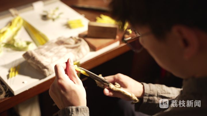 盡管對(duì)初學(xué)者來(lái)說(shuō),每一個(gè)步驟都有不同的難點(diǎn),但最讓嚴(yán)鑫記憶猶新的還是打尖留下的疼痛?!按蚣饩褪菍⒔q條修剪成需要的形狀,需要左右手的配合,右手拿剪刀,左手的食指和拇指進(jìn)行捻轉(zhuǎn)。一天的工作當(dāng)中我們基本上大部分時(shí)間都是在做這個(gè)過(guò)程。剛開(kāi)始學(xué)的時(shí)候晚上睡覺(jué)都會(huì)疼醒,左手的食指都沒(méi)有辦法完全彎曲下去?!?/p>