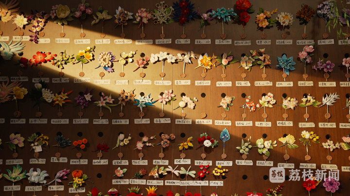 金黃的銀杏、潔白的茉莉、粉嫩的桃花……在南京甘熙故居內(nèi)的一處深幽廳房,彰顯著四季之美的絨花同時(shí)在一面古樸的深色墻面上盛放,引來(lái)游人的注目。這似乎也是絨花自身發(fā)展的生動(dòng)隱喻,歷經(jīng)千年的喧囂,它們依舊花開(kāi)不敗,綻放出奪目的光彩。