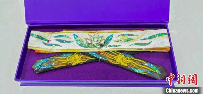 一旁,葉晶晶則忙著給影視劇劇組提供非遺道具。“與《永夜星河》制作團隊的合作,標志著我們首次嘗試將傳統(tǒng)工藝與現(xiàn)代影視藝術(shù)進行融合。我們結(jié)合了傳統(tǒng)的螺鈿工藝與絲綢工藝,不僅推出了螺鈿發(fā)帶,還設(shè)計了蓮花頭飾和掛飾。每一步驟都經(jīng)過精心策劃和細致制作,最終讓這些螺鈿飾品成為劇中最閃亮的道具?!?/p>