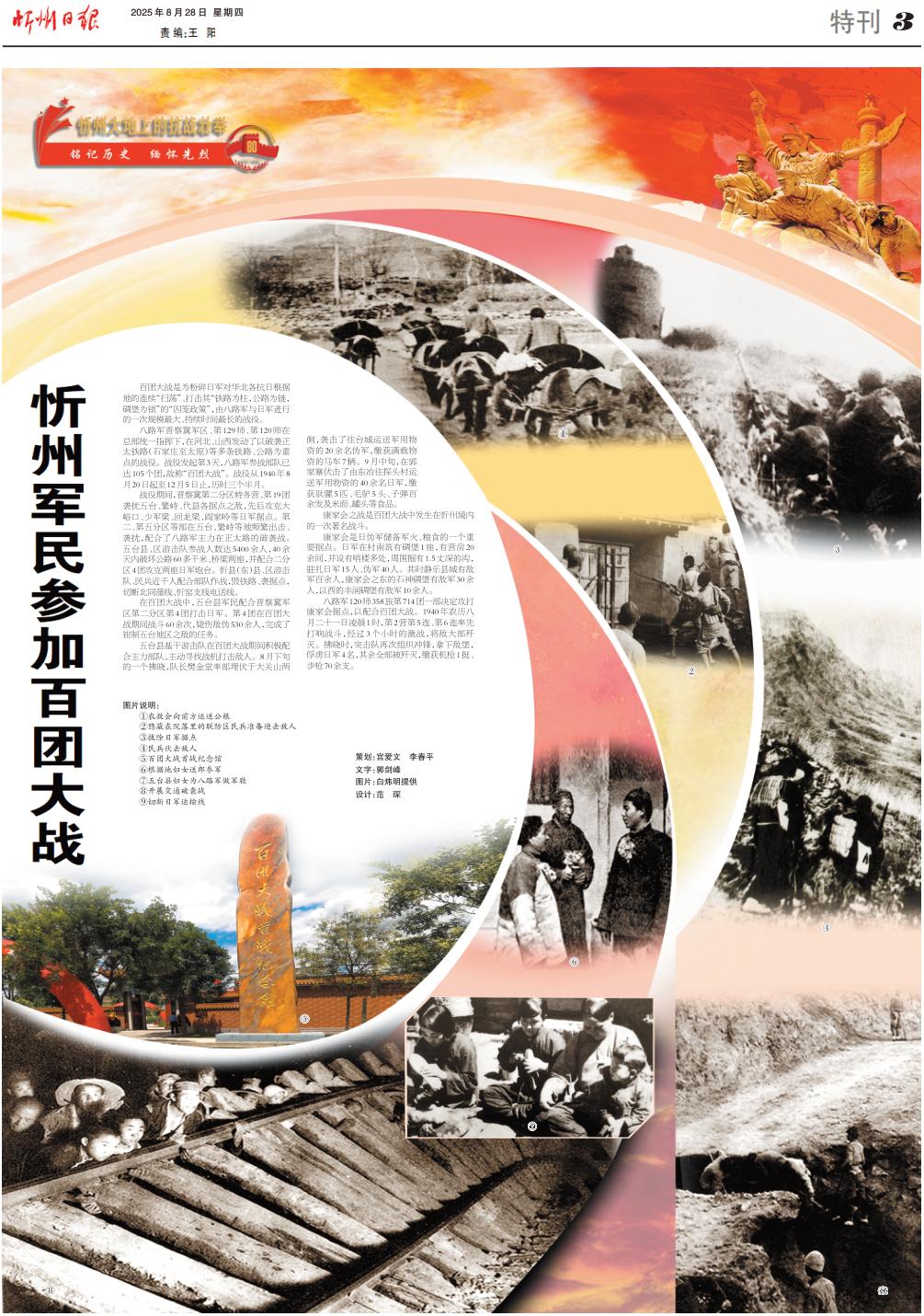 在百團大戰(zhàn)中,五臺縣軍民配合晉察冀軍區(qū)第二分區(qū)第4團打擊日軍。第4團在百團大戰(zhàn)期間戰(zhàn)斗60余次,斃傷敵偽530余人,完成了鉗制五臺地區(qū)之?dāng)车娜蝿?wù)。