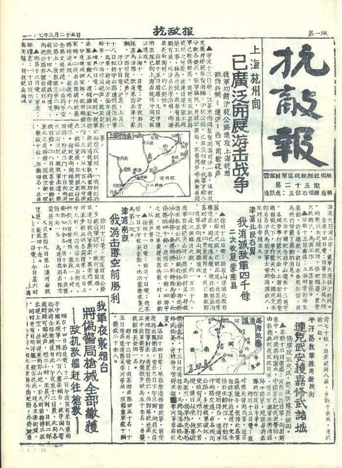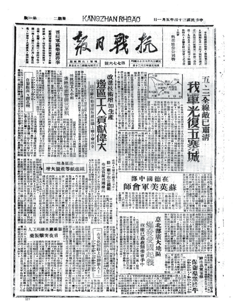 抗戰(zhàn)時(shí)期,忻州既是晉察冀、晉綏兩大根據(jù)地的中心腹地,也是抗戰(zhàn)初期全面抗敵的主戰(zhàn)場(chǎng)。忻州以其地理咽喉、戰(zhàn)役要沖、根據(jù)地核心和人民戰(zhàn)爭(zhēng)典范的多重角色,成為抗日戰(zhàn)爭(zhēng)中抵御日軍侵略、堅(jiān)持?jǐn)澈蠖窢?zhēng)的戰(zhàn)略支點(diǎn)之一。其歷史貢獻(xiàn)不僅體現(xiàn)在軍事上,更彰顯了中華民族不屈不撓的抗戰(zhàn)精神。隨著八路軍平型關(guān)大捷、雁門(mén)關(guān)伏擊戰(zhàn)、夜襲陽(yáng)明堡飛機(jī)場(chǎng)等戰(zhàn)役勝利,1937年11月7日晉察冀軍區(qū)在五臺(tái)成立。12月11日,《抗敵報(bào)》誕生。1940年11月,《抗敵報(bào)》改名為《晉察冀日?qǐng)?bào)》,鄧拓任報(bào)社主任。《抗敵報(bào)》最初在五臺(tái)石嘴村石印,后改鉛印。1938年1月,晉察冀邊區(qū)行政委員會(huì)在河北阜平成立,兩月后,邊區(qū)行政委員會(huì)遷駐五臺(tái)射虎川臺(tái)麓寺,報(bào)社、印刷廠分駐?;垅?、蛤蟆石古佛寺。1940年9月18日,晉綏分局機(jī)關(guān)報(bào)《抗戰(zhàn)日?qǐng)?bào)》,伴隨著隆隆炮火聲,在距離忻州不遠(yuǎn)的興縣艱難創(chuàng)刊。自此,那些戰(zhàn)地記者、通訊員甚或普通民眾,有名的,無(wú)名的,以個(gè)人名義,以集體名義,在極其艱苦的條件下,用滾燙筆尖秉筆直書(shū),為我們珍存了那些發(fā)生在忻州大地上前仆后繼、可歌可泣的抗戰(zhàn)故事,也讓今天的人們一旦捧讀就會(huì)熱血沸騰。
