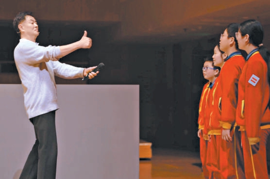 現(xiàn)場互動(dòng)環(huán)節(jié)更是高潮迭起。多位青少年登臺(tái)朗誦《木蘭辭》,濮存昕始終耐心傾聽,不時(shí)點(diǎn)頭稱贊:“很好!肢體再放松點(diǎn),聲音可以再大點(diǎn)!”他總是先肯定孩子們的“天然天真”,再以專業(yè)眼光指出可提升之處,親自示范如何通過技術(shù)訓(xùn)練達(dá)到更自由的表達(dá)。這種既保護(hù)本真、又引導(dǎo)提升的教學(xué)理念,正是他反復(fù)強(qiáng)調(diào)的“平衡技巧訓(xùn)練與個(gè)性表達(dá),避免陷入機(jī)械化表演”的生動(dòng)實(shí)踐。