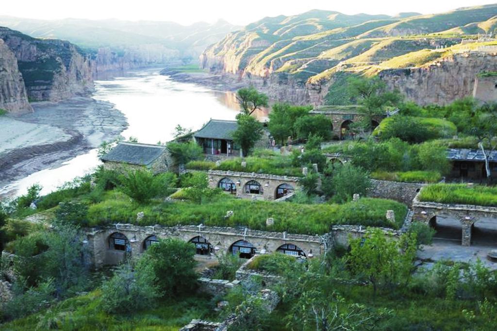 一眼望不到頭的長(zhǎng)城從遠(yuǎn)處山梁上綿延而來(lái)直達(dá)河邊??床灰?jiàn)激流奔涌,聽不見(jiàn)黃河濤聲,清清的河水在這里悠悠徜徉盤桓。如果說(shuō)長(zhǎng)城如父親般剛強(qiáng)有力,沉雄穩(wěn)健,黃河如母親般溫柔親切,寬懷博大,那寺溝恰如父母懷中幸福溫婉的小孩。寺溝慵懶地在河邊梳洗自己的容顏,連同身邊的長(zhǎng)城倒影在粼粼的河水中,展現(xiàn)出難得的田園詩(shī)般的浪漫與柔情。山上長(zhǎng)城夯土保持完整,有青銅群雕,旌旗獵獵,似將軍正在縱馬出巡。登墩臺(tái)四望,視野開闊,長(zhǎng)城下人家炊煙裊裊,雞犬相聞。峽谷中游船往來(lái),馬達(dá)轟鳴聲中幾只野鴨貼著河面飛向不遠(yuǎn)的村子,飛向?qū)Π渡窖?。寺溝,一個(gè)把塞北風(fēng)光與江南水鄉(xiāng)有機(jī)融為一體的地方。