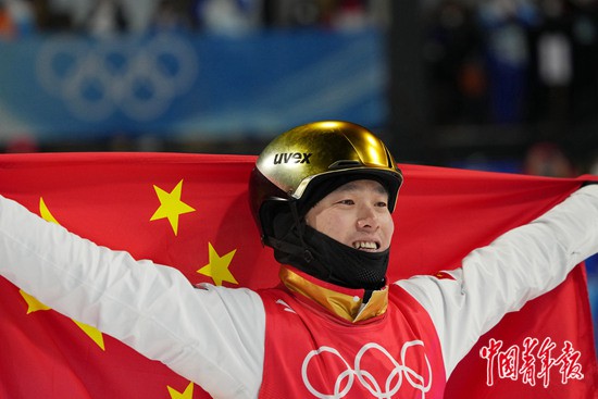 本報(bào)河北崇禮2月16日電(中青報(bào)·中青網(wǎng)記者 梁璇)滑行、起跳、旋轉(zhuǎn)、落地,32歲的齊廣璞今晚首次在冬奧賽場(chǎng)上順利完成了向后翻騰三周轉(zhuǎn)體1800度,這個(gè)難度系數(shù)高達(dá)5.0的動(dòng)作讓他以129.00分的成績(jī)奪得自由式滑雪男子空中技巧冠軍。
