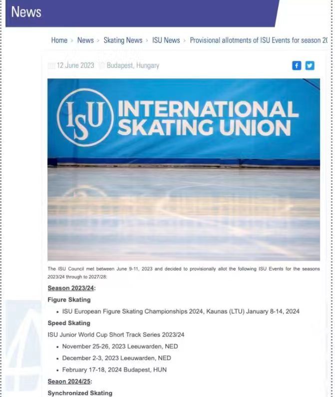 新華社北京6月12日電(記者李嘉)國(guó)際滑冰聯(lián)盟(ISU)理事會(huì)12日宣布,2026年四大洲花樣滑冰錦標(biāo)賽將于2026年1月19日至24日在北京舉行。這也是繼2003年之后,四大洲錦標(biāo)賽第二次落戶北京。