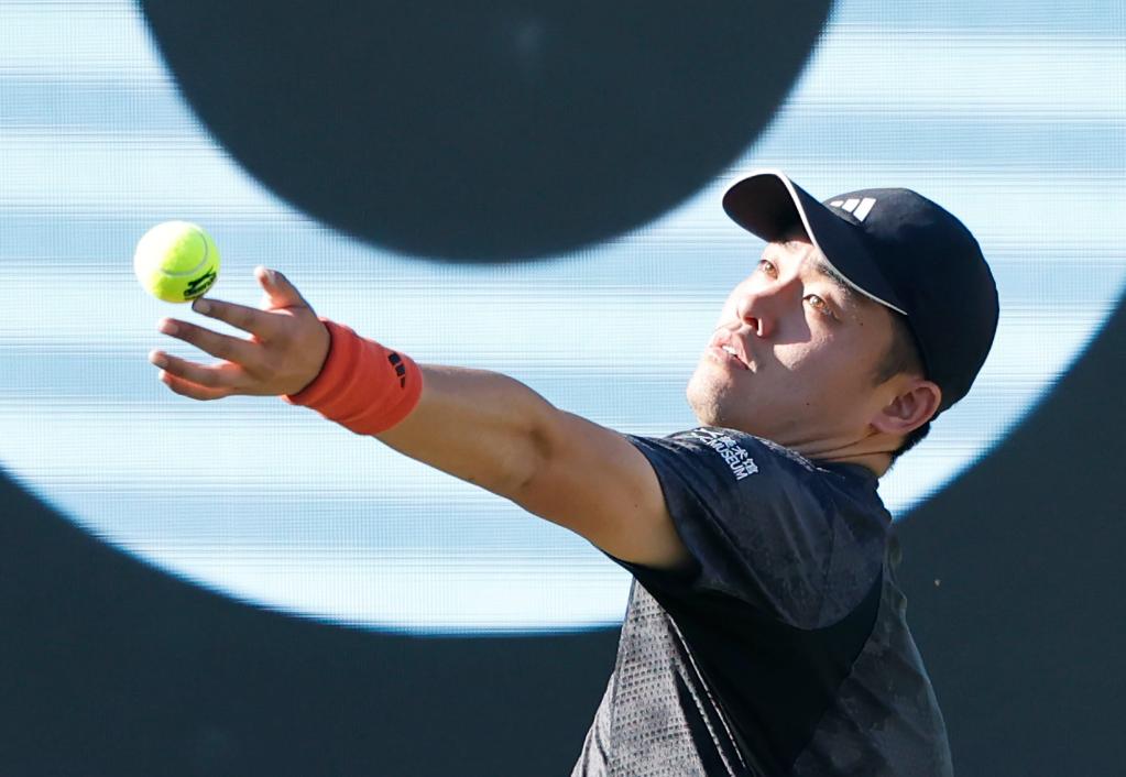 6月13日,吳易昺在比賽中發(fā)球。新華社發(fā)(菲利普·魯伊茲攝)