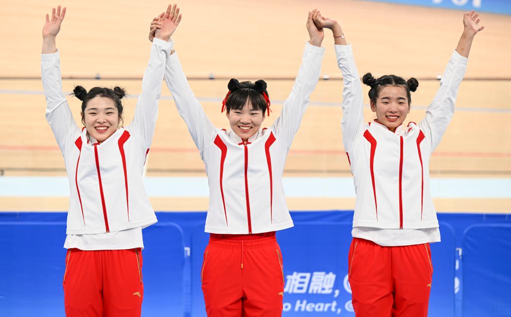 新華社杭州9月27日電(記者馬劍、孫哲)站在淳安界首體育中心自行車館的頒獎(jiǎng)臺(tái)上,獲得杭州亞運(yùn)會(huì)場地自行車女子團(tuán)體競速賽金牌的3名中國隊(duì)選手清一色頂著“哪吒頭”,引來不少中外媒體的關(guān)注。